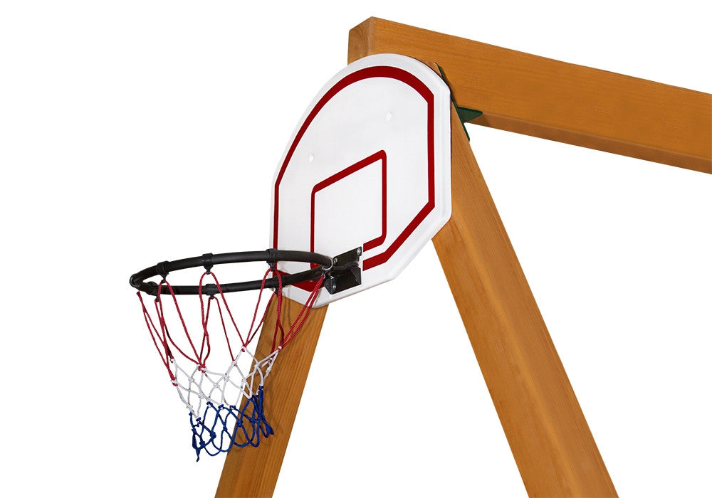 Get out and shoot some hoops! Our basketball hoop can be mounted on nearly any wood surface and is a perfect addition to the exterior of any of our playsets. It comes with a ball, pump, and needle!