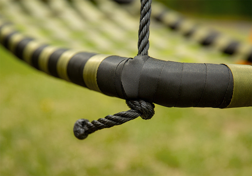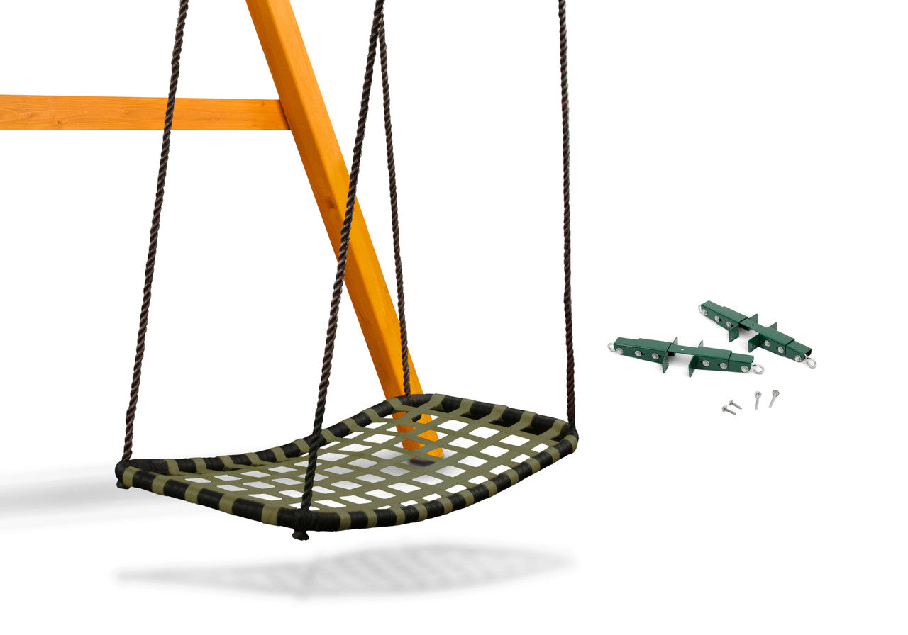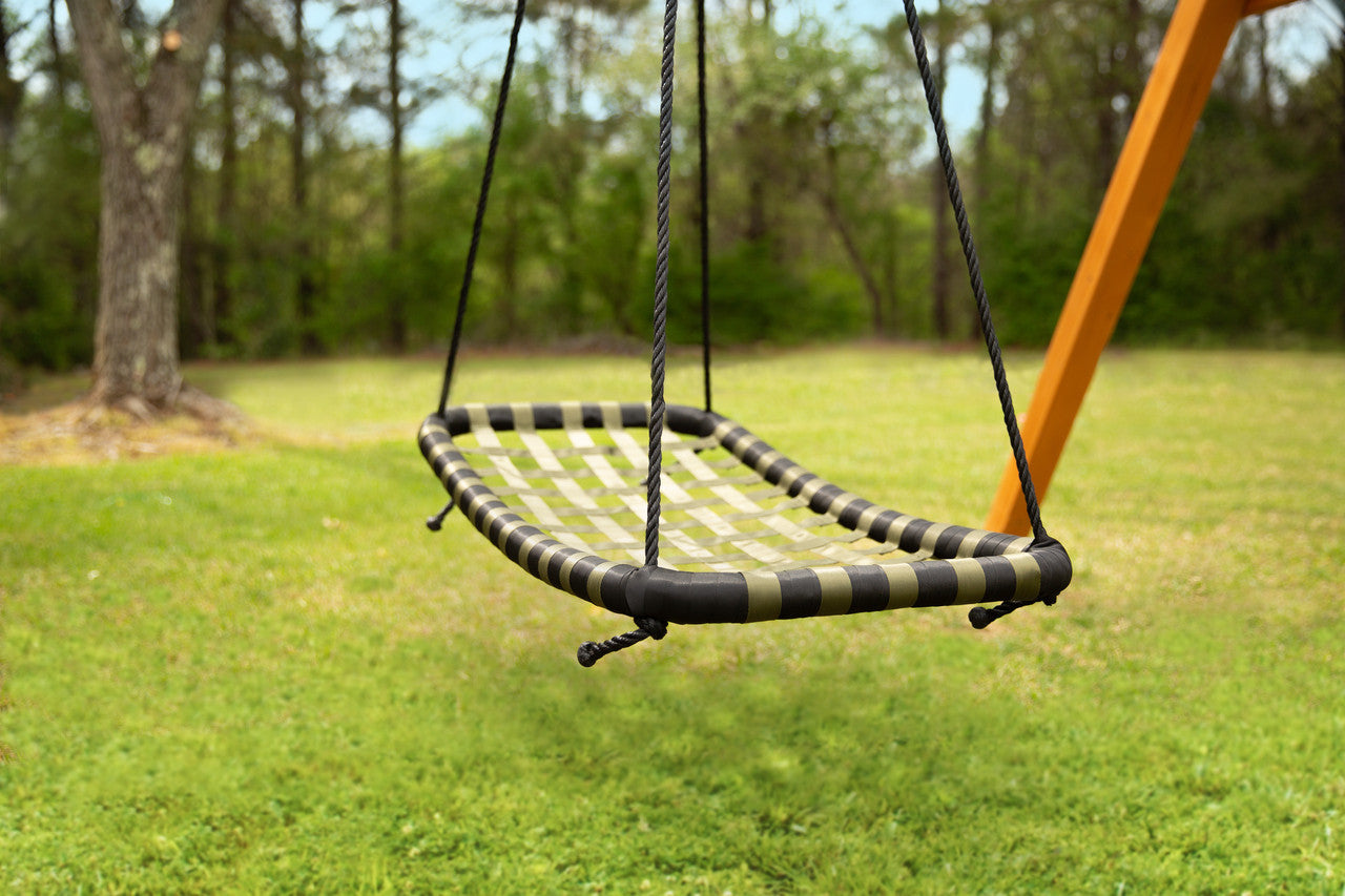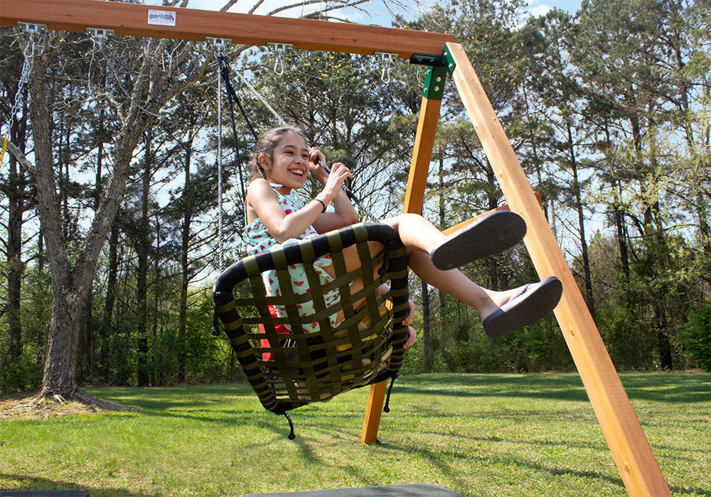 Lay down and glide on our Chill N Swing! This unique swing provides a fun alternative to traditional swings. It consists of a wide strap inter-woven and supported by a heavy-duty frame. This will fit any standard swing set.