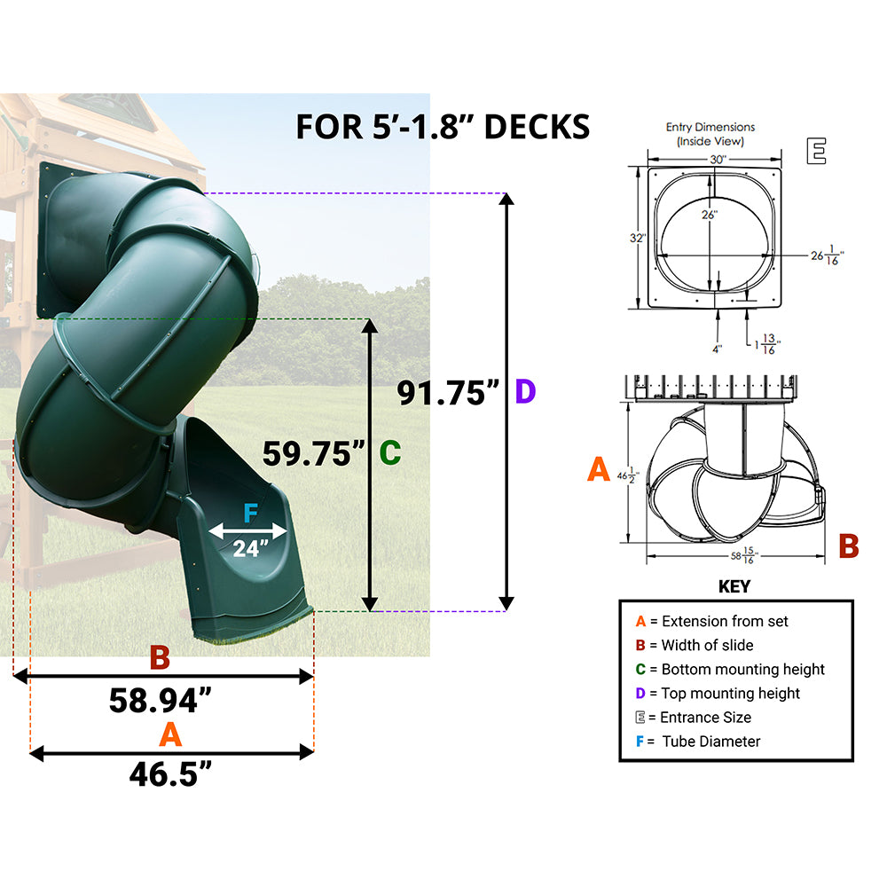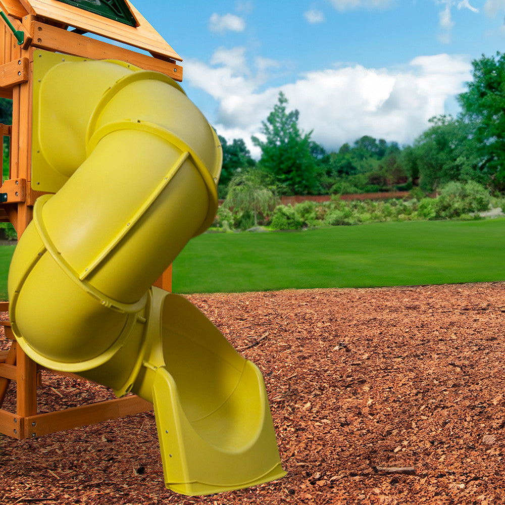Super safe and full of innovative design, the Quick Connect Turbo Slide takes outdoor play to the next level! With an array of specialized features like an adjustable footer, ring joints, pre-molded nuts, and sturdy HDPE construction, it makes getting set up and having fun a breeze. Not only that but compared to other tube slides the Quick Connect uses 60% less hardware pieces that are more hidden and make for a more natural look. It's the type of slide that can help kids rediscover the joy of their playset by offering a twisting new challenge and an exciting sliding experience that never gets old. For outdoor adventure that can be installed in a snap, you can't go wrong with the Quick Connect Turbo Tube Slide!