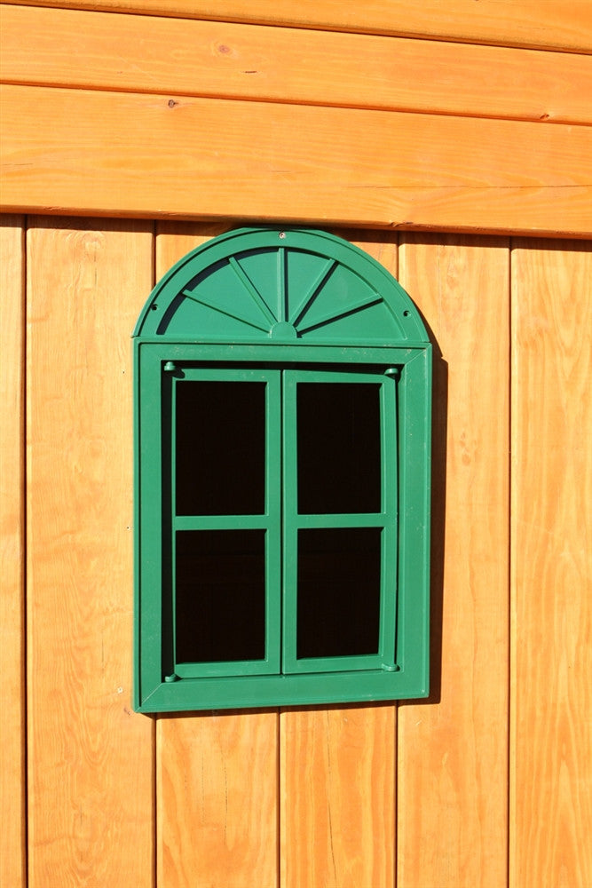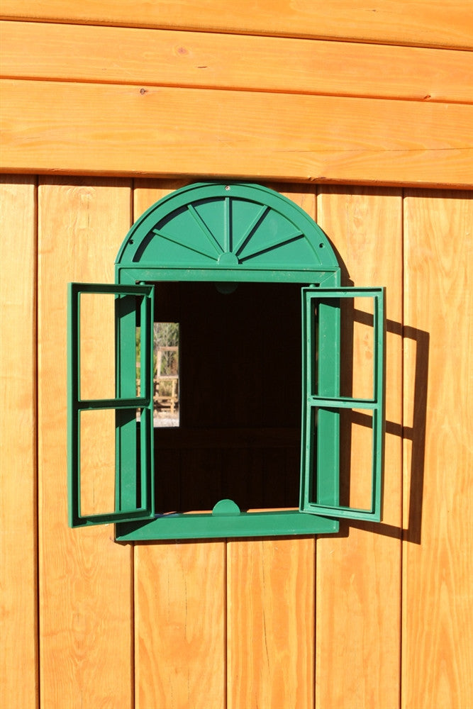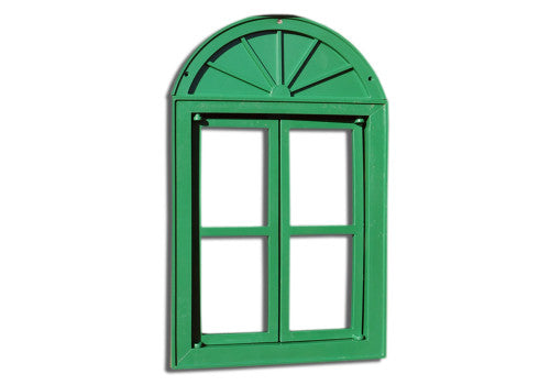 The Window Kit from Gorilla Playsets is a great addition to any swing set that has an enclosed playhouse at the top. The Window Kit in green and opens with functioning window and working shutters! It lets in more light and more breeze, to keep the playhouse comfortable while kids are playing. It comes with a decorative frame including a sunburst. The sunburst (included) is a separate from the window itself, so the pieces can be used together or separately!