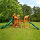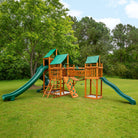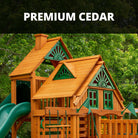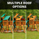 - Available with a Standard Wood Roof featuring Sunbursts, Dormers and a Chimney; Green Vinyl Canopy or our Wood Roof w/ Treehouse Add-On