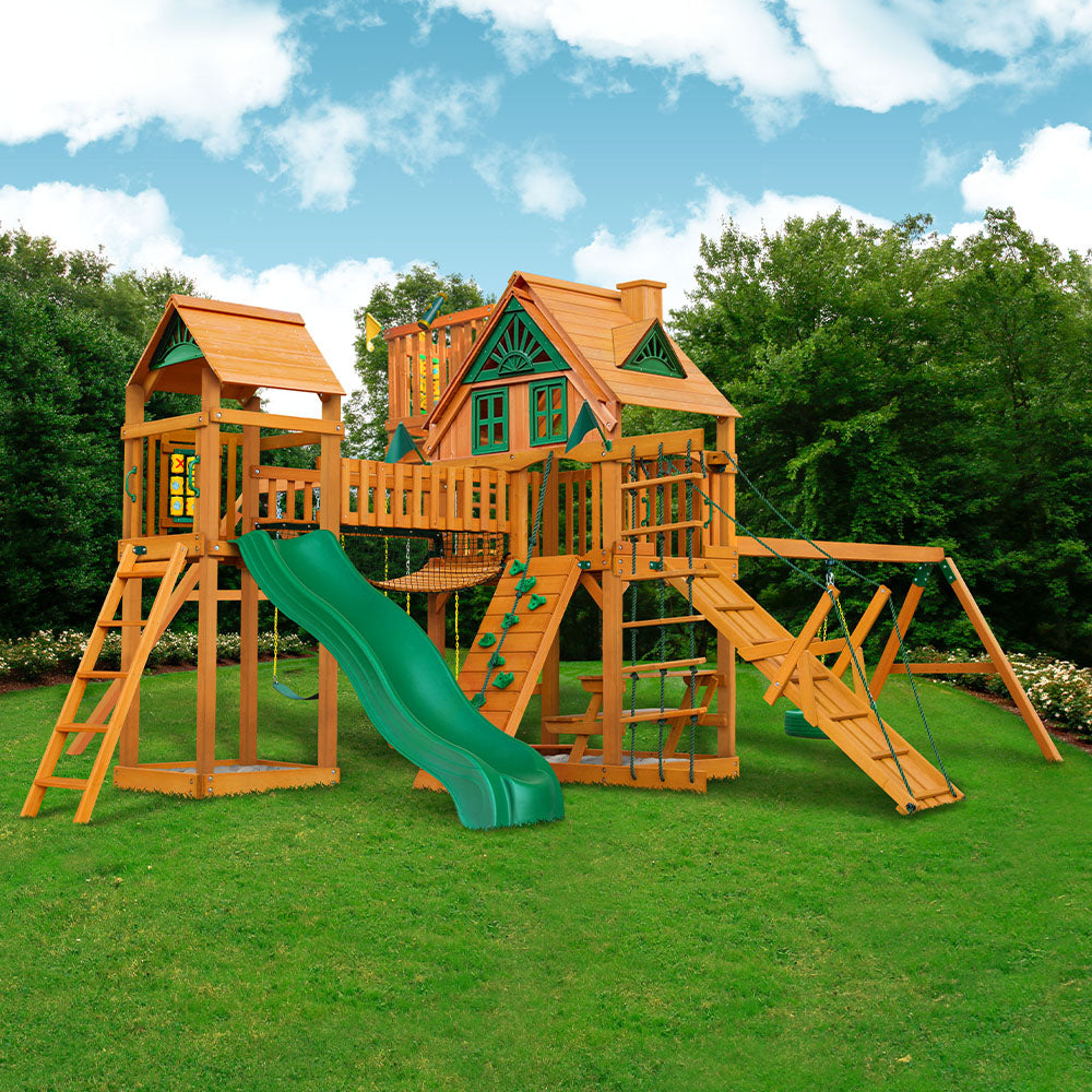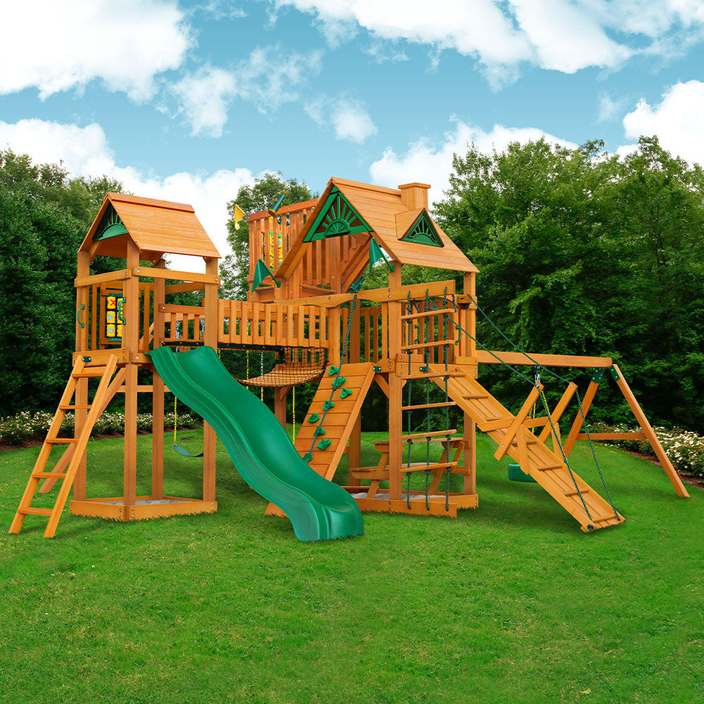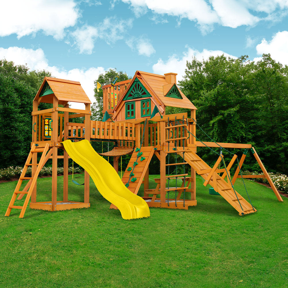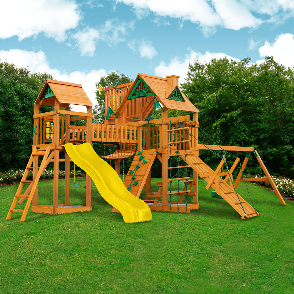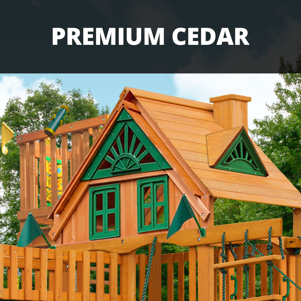 A set like the Gorilla Playsets Pioneer Peak Swing Set is going to be the talk of the town when the kid's get to play on it every day. This is a great set with an Alpine Wave Slide™, rock climbing wall, a clatter bridge and even two sandboxes below! There's so much more that the possibilities for fun are endless. The main beams and posts are also available in Natural Cedar. Order yours today!