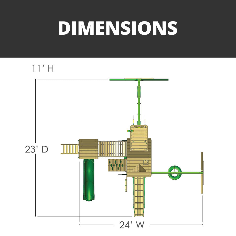 - Minimum Play Area Dimensions: 36'W x 35'D