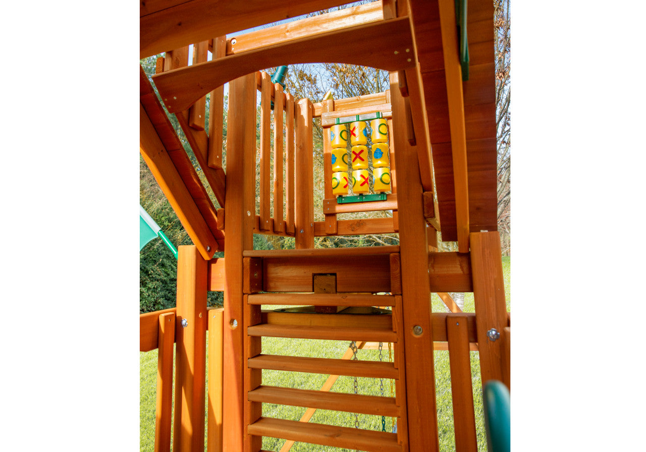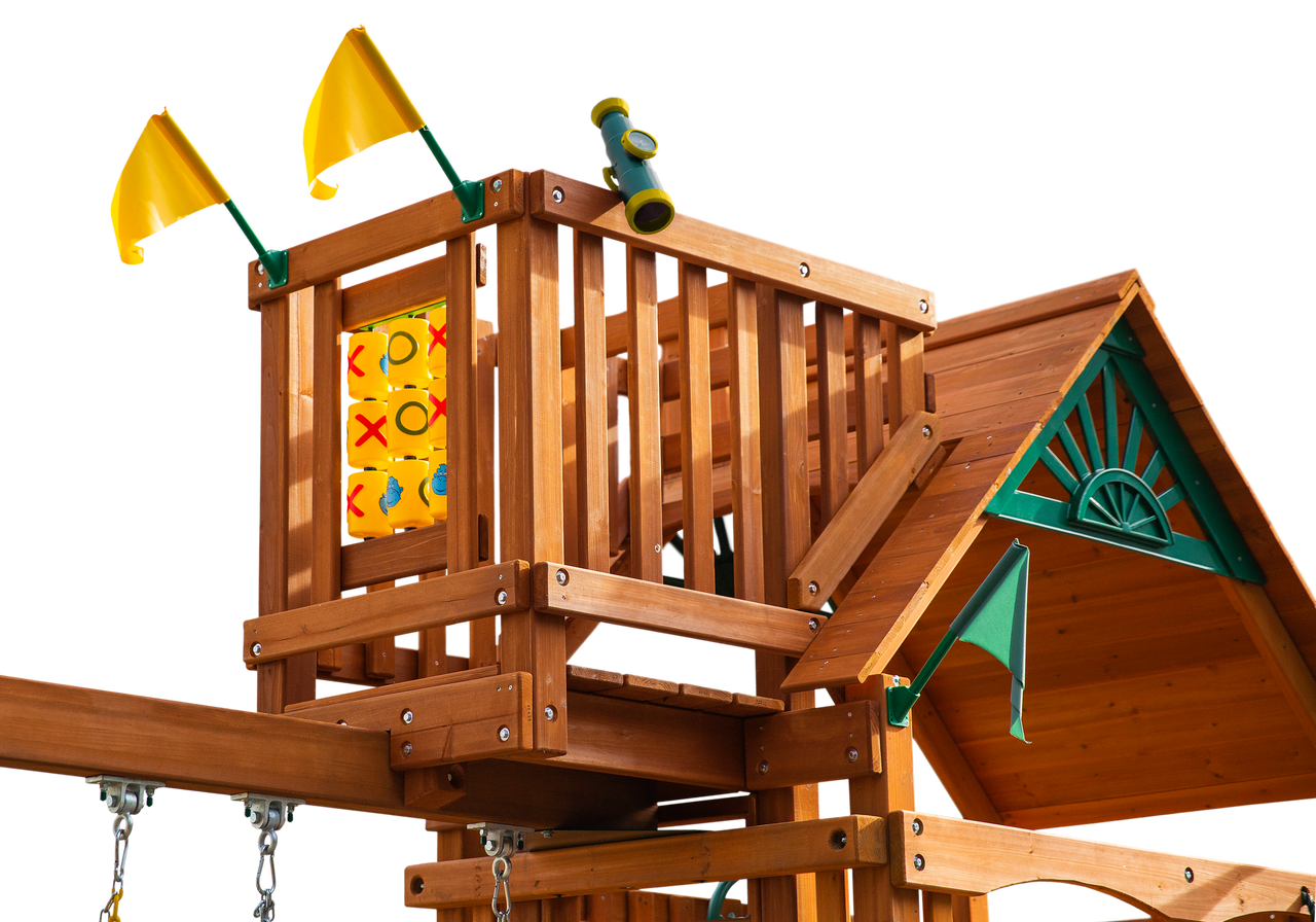 - Includes all accessories shown: Tic-Tac-Toe Spinner Panel, a pair of Safety Handles, a telescope with compass, and two yellow flags