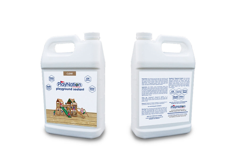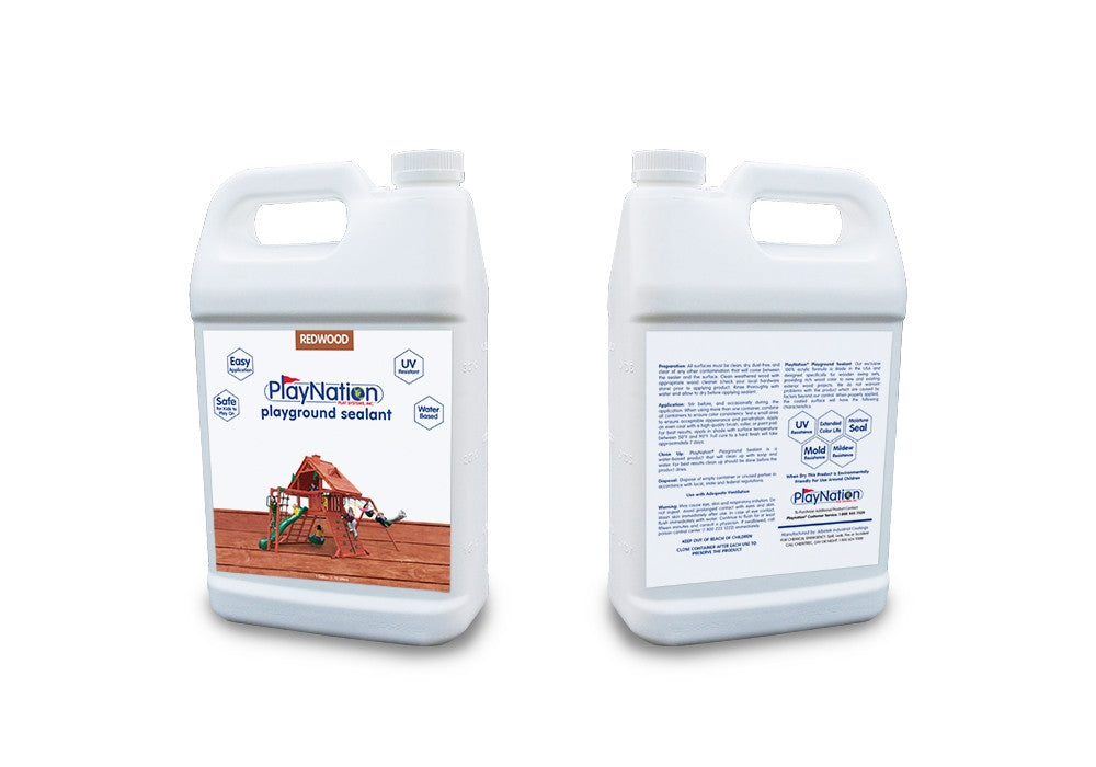 Protect your swing set from UV rays, mildew and moisture with PlayNation Playground Stain/Sealant! This combined stain and sealant is water-based and sure to extend the life of your swing set for years to come. We designed this specifically for wooden swing sets, providing rich wood color to new and existing exterior wood projects.